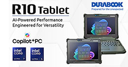 Durabook Americas, the global rugged mobile solutions brand owned by Twinhead International Corporation, announced today the launch of its AI-powered fully rugged R10 tablet. Equipped with high-performance Intel® Core™ Ultra 200V series processors, the 10-inch device is one of the first Copilot+ PC rugged tablets on the market. Adding 2-in-1versatility, the R10 Rugged Tablet can be paired with a detachable backlit keyboard, seamlessly transforming it into a rugged laptop PC. [See Durabook media release] -- Posted Wednesday, October 29, 2025