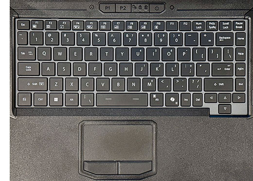 The latest DURABOOK Z14I is virtually unchanged. It is full-scale and has 88 keys. The key design is the standard "island" style with flat keys and minimal travel but good tactile feedback, as is common in today's laptop and even desktop keyboards. The only visible change is that the "hamburger key", the one with the three stacked lines that brings up menus or navigation bars, has been replaced by a "Copilot" key that launches the Microsoft Copilot AI assistant.