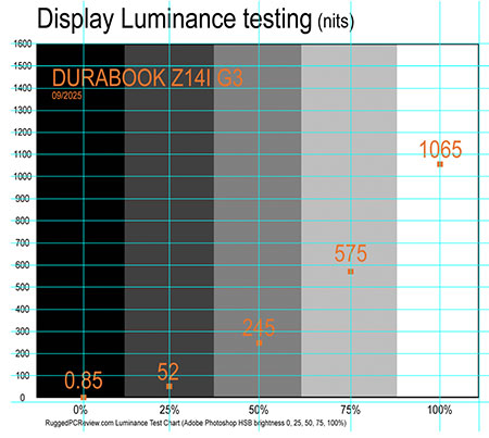According to Durabook, the Z14I has been MIL-STD-810H certified for drop, shock, vibration, rain, dust, altitude, freeze/thaw, high/low temperature, temperature shock, humidity, explosive atmosphere, solar radiation, salt fog, and fungus resistance. It also has been MIL-STD-461G certified for conduction, radiation, conducted susceptibility, and radiated susceptibility. We'd like to see these certifications published on the Durabook website so that prospective customers can see the exact testing parameters.