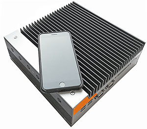 The OnLogic Karbon 700 webpage boldly proclaims the the new machine as "high-performance rugged computing, evolved." But what is the Karbon 700? Like most industrial PCs it's not that large, measuring a bit less than 10 x 10 inches and about three inches tall. The image to the left shows the unit with an iPhone 7 Plus sitting on it.