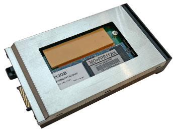 The solid state drive is located inside a black plastic box with a metal cover that fits flush into the recessed compartment on the upper left. Fortunately, old-fashioned, crash-prone hard drives are gone from all newer rugged devices and that, of course, also goes for the S14I. The caddy can accommodate one or two speedy NVME PCIE solid state disks. 256GB is standard, ours came with 512GB. Optionally available are self-encrypting OPAL 2.0 SSDs.