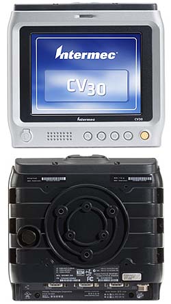 Unlike Intermec's other fixed-mount computer, the CV60, the CV30 is strictly a Windows Mobile or Windows CE.Net device and cannot run Windows XP. It is powered by the 520MHz version of the Marvell PXA270 processor that is used in numerous Windows CE and Pocket PC handhelds. There is 128MB of SDRAM and 128MB of flash memory. Memory expansion is via a SD Card slot. Unlike most Windows CE devices, the CV30 has a generous complement of onboard interfaces: there are two USB 2.0 host ports with DB15 locking connectors, a standard RJ45 LAN port, as well as two DB9 legacy serial ports.