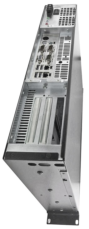 But that's not all. The unit also offers a half-size PCI slot to add customer-driven functionality, and there are two additional cut-outs where four additional serial ports and other I/O can be mounted.