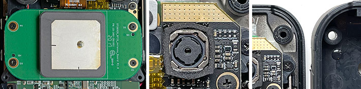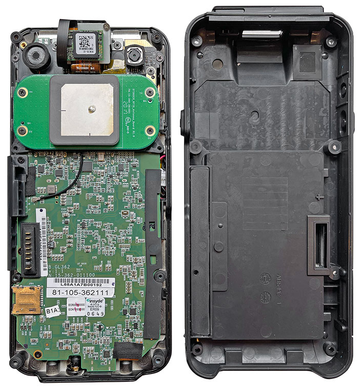 The next set of pictures shows some of the details inside the DT362GL. On the left the large UHF RFID antenna board that is almost as wide as the device itself. DT Research said their UHF RFID setup is a fairly specialized build designed for 20+ foot range and working within supporting infrastructure and software. In the middle a look at the optional 8 megapixel camera, and on the right a closer look at the units tongue-and-groove seal with a replaceable o-ring.