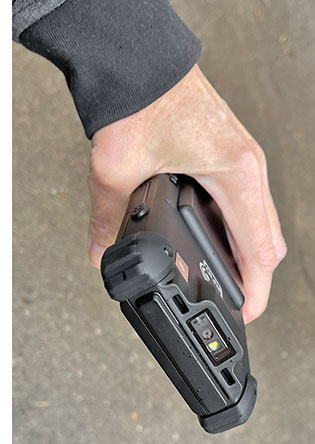 Below a view at the integrated industrial-grade 1D/2D scanner.