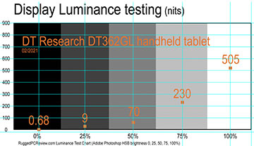 DT Research lists shock and vibration testing in accordance with MIL-STD-810G procedures. Given that shock is the most likely hazards handhelds encounter we'd have liked to see more detail here, and also testing according to the newer MIL-STD-810H.