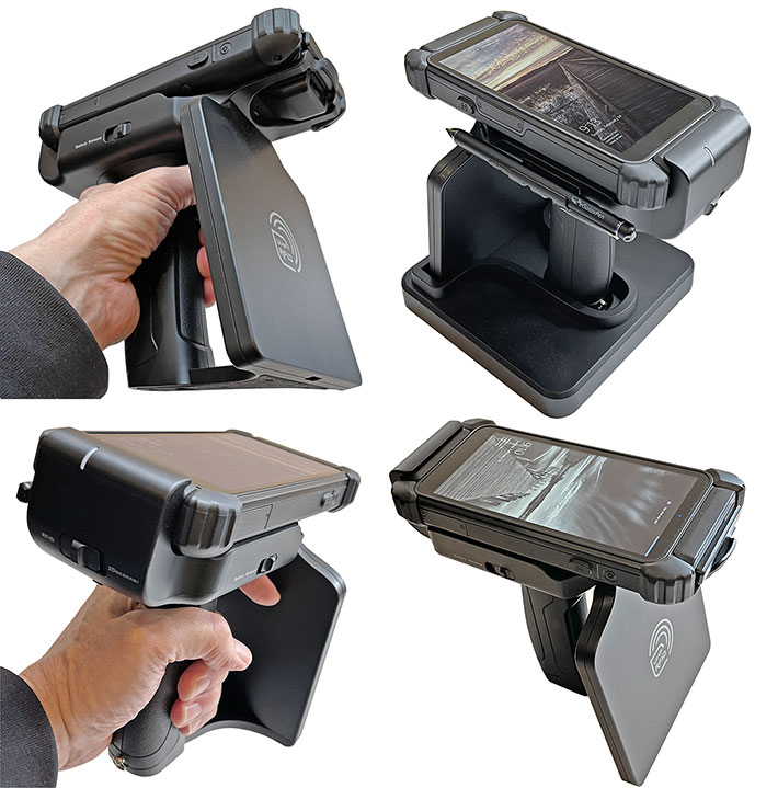 DT Research also offers a charging cradle for the UHF RFID trigger grip reader. That one can charge a second battery and also has a seat for the optional pen.