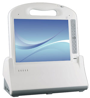 The GammaTech Durabook MT10 MCA is yet another design that follows Intel's original proof of concept platform with its tablet form factor and integrated multi-purpose handle for easy carrying and use during a clinical environment work shift. The device is also listed in Twinhead's own lineup where it is the DigiHeal T10Y MCA Series (do all MCAs need funny sounding names?) Further, TabletKiosk also seems to carry this machine as the MediSlate MCA i1040XT.