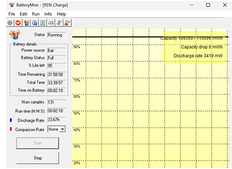 11.61V 4,070 mAH 47.25Wh Li-Ion batteries; optional 10.8V 9,240 mAH 99.8Wh Li-Ion battery, optional bridge battery
