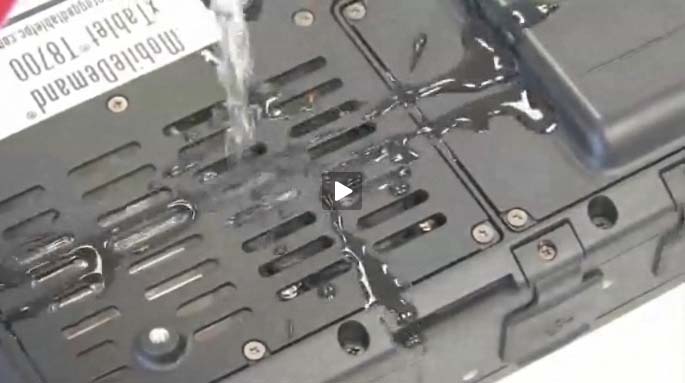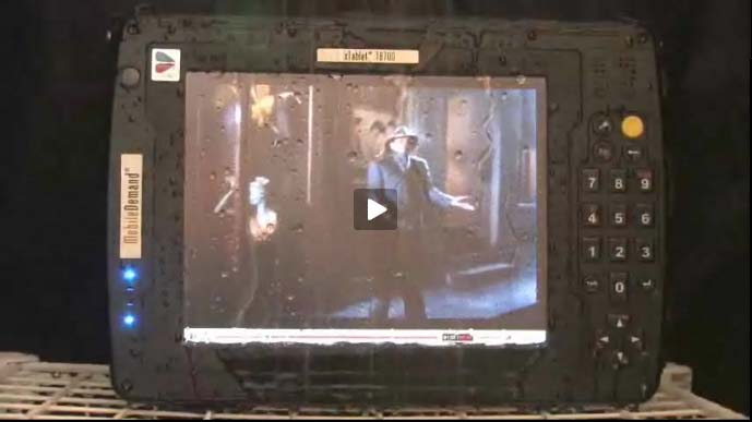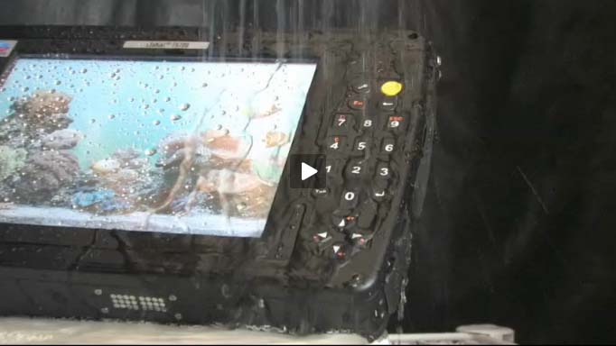 Ok... on to water tests. The MobileDemand xTablet has an official IP54 rating, which means it should be protected against water spray from all sides. The video sure gets that point across. And Gene Kelly does "Singing in the Rain" while the MobileDemand torture crew sprays the tablet.