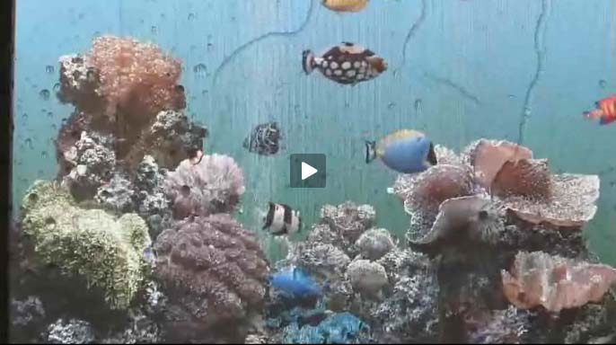 Water running down a simulated aquarium screen saver with fish swimming around.