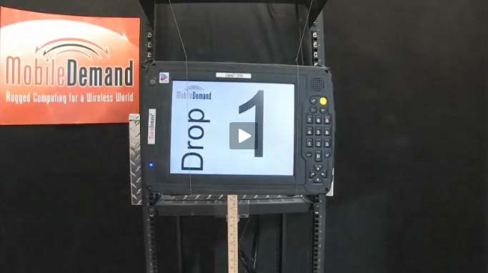So now the tablet is ready to be dropped. The MIL-SPEC demands no fewer than 26 drops from three feet, and the MobileDemand video shows every one, live.