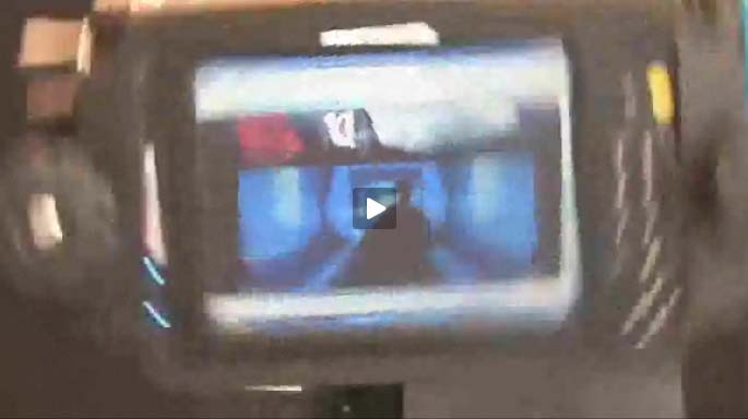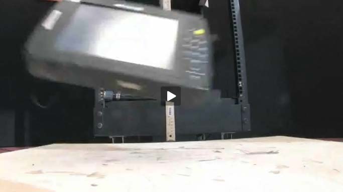 MobileDemand likes to run video on their machines while they are being tortured. And often they pick one that humorously fits the test performed. This here is the "Speed Racer" car falling off a cliff.