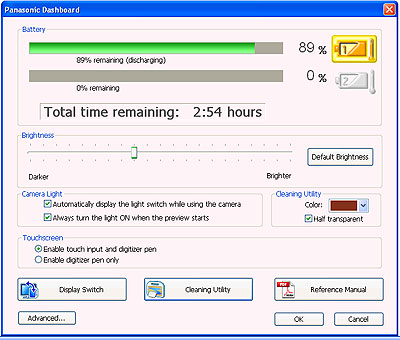 The Panasonic Dashboard is a handy information and settings utility that provides summary information and provides quick access to some of the major settings. Here are the Panasonic Dashboard's functions: