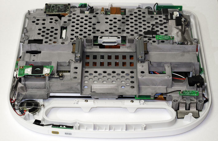 Looking at the guts of the H1, you realize why the machine doesn't heat up at all. It's in part due to the low-power Atom chip, of course, but also because of excellent thermal engineering. There is, for example, a heat dissipation sheet inserted between the main circuit board and the magnesium case. And there is a fairly generous air space between the magnesium chassis and the H1's plastic case.
