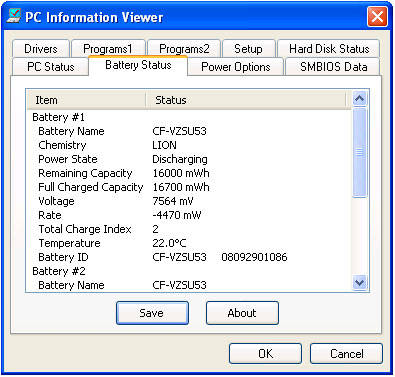 The Panasonic H1 comes with a PC Information Viewer that provides a wealth of high level and low level data in one handy utility. The viewer shows: