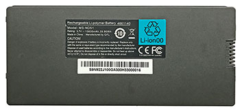 Rechargeable, replaceable 3.7V 10,800mAH 40 watt-hour Li-Polymer ("8 hrs")