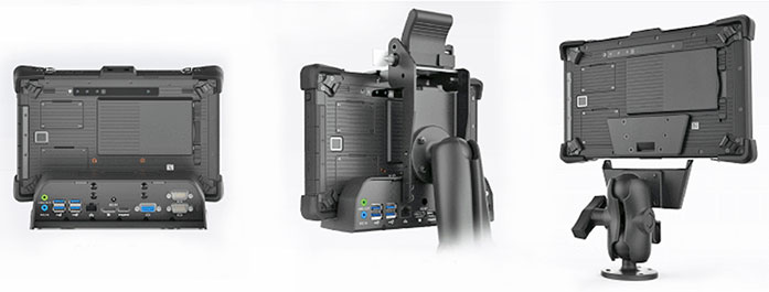 Most tablets used in business or on the job come with some kind of docking and mounting options, and the xTablet T1150 is no different. Available are a desktop docking station, a vehicle dock, and very handy quick-release mounting options.