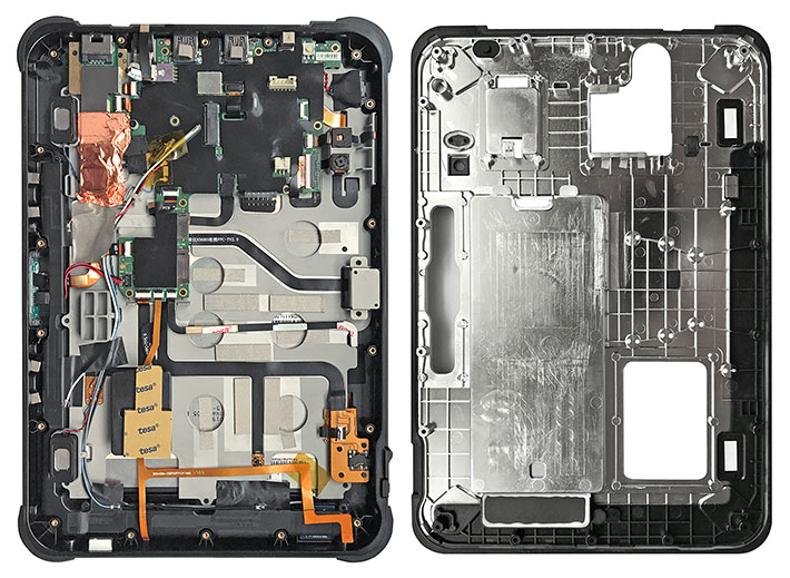 The tablet's rubber and polycarbonate casing is well designed and of high quality. Protective bumpers and port plugs are effective and can easily be replaced. The tablet is well sealed, can survive steep drops unharmed, and the operating temperature range of the tablet is wide enough for virtually any application.